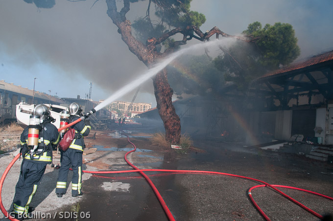Cannes - Le danger électrique dans un entrepôt RFF en feu