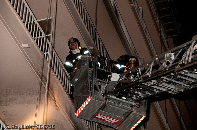Enjambé les balcons depuis la nacelle de la grande échelle, un geste mainte fois répété durant la nuit