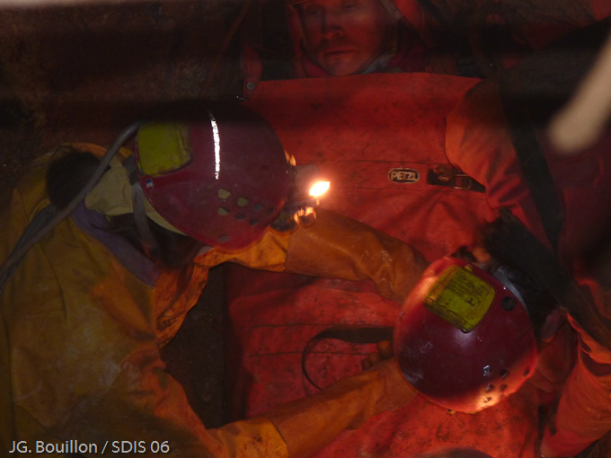 La victime est sortie du "Boyau des principes", la longue remontée se poursuit.