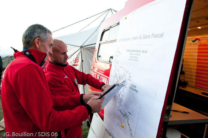 Le capitaine Phillipe Auvaro et Eric Sapet, premier COS, au PC de site.
