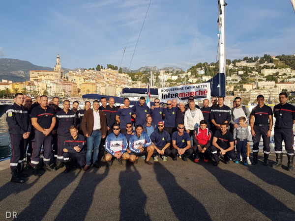 Le mardi 10 octobre 2017 à 9 heures, escortés par leur bateau d’assistance, ANTHEA, un voilier de 12 mètres, les sapeurs-pompiers quittaient le vieux port de Menton, à bord de leur kayak à pédales, initialement prévu pour la pêche en mer.